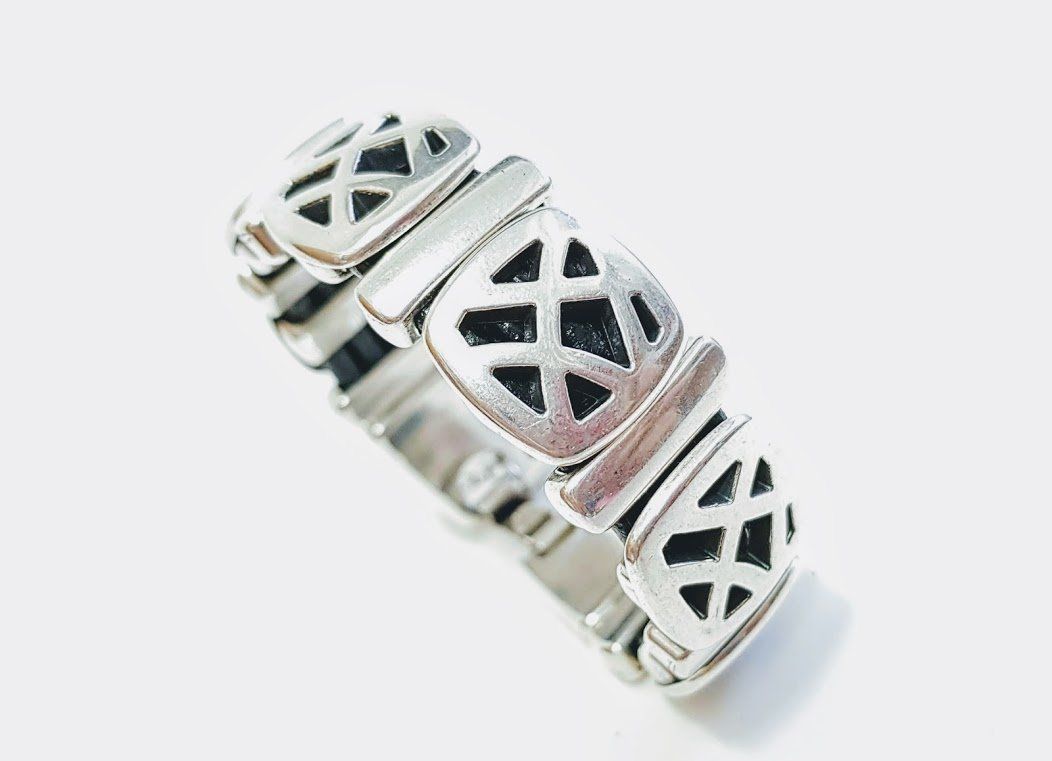 Bracelet baigné dans de l'argent, des résines de cuir et de terre, fermeture à bouton, pour plus de couleurs
