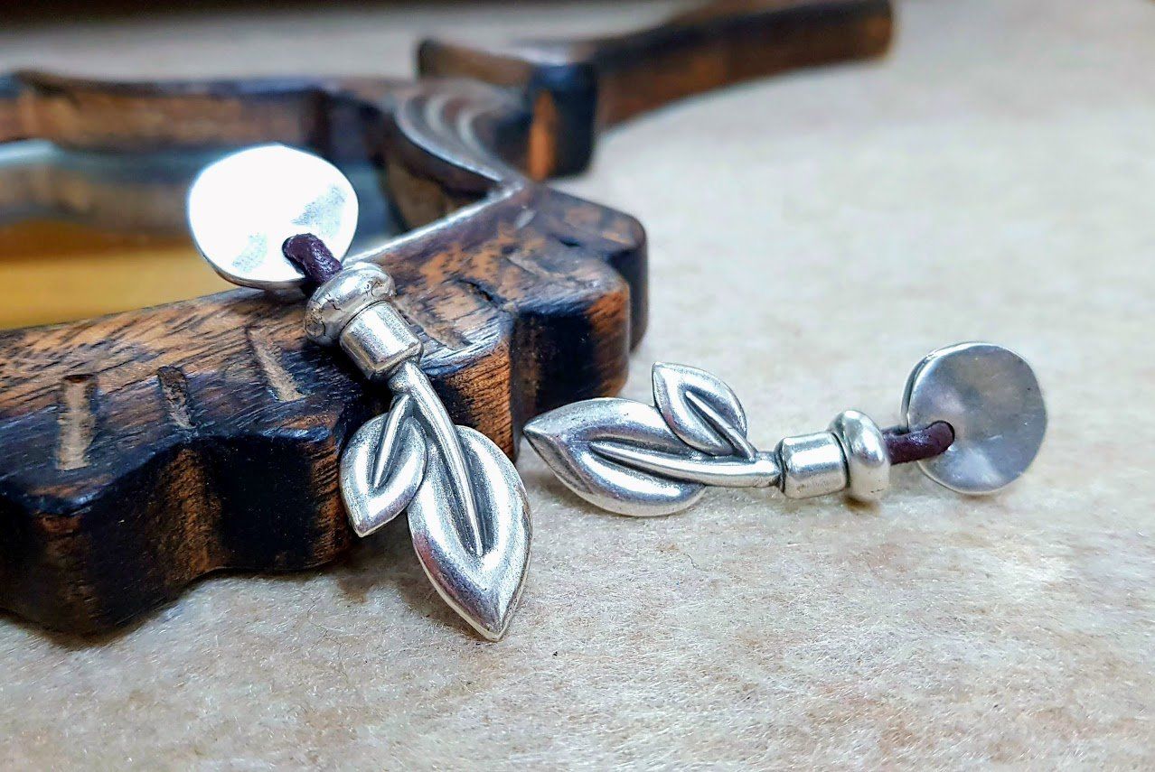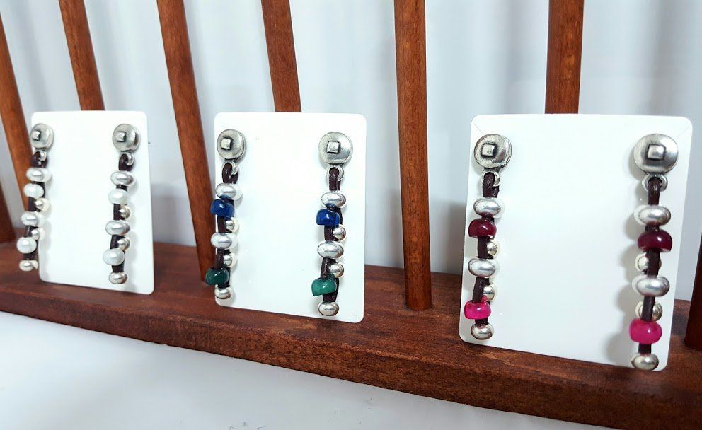 Pendientes mineral color (consultar tonos) bañados en plata y cuero.