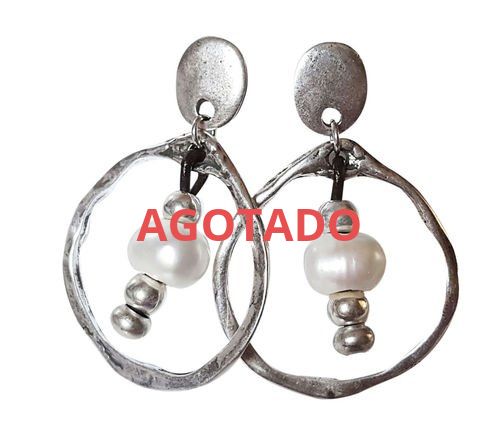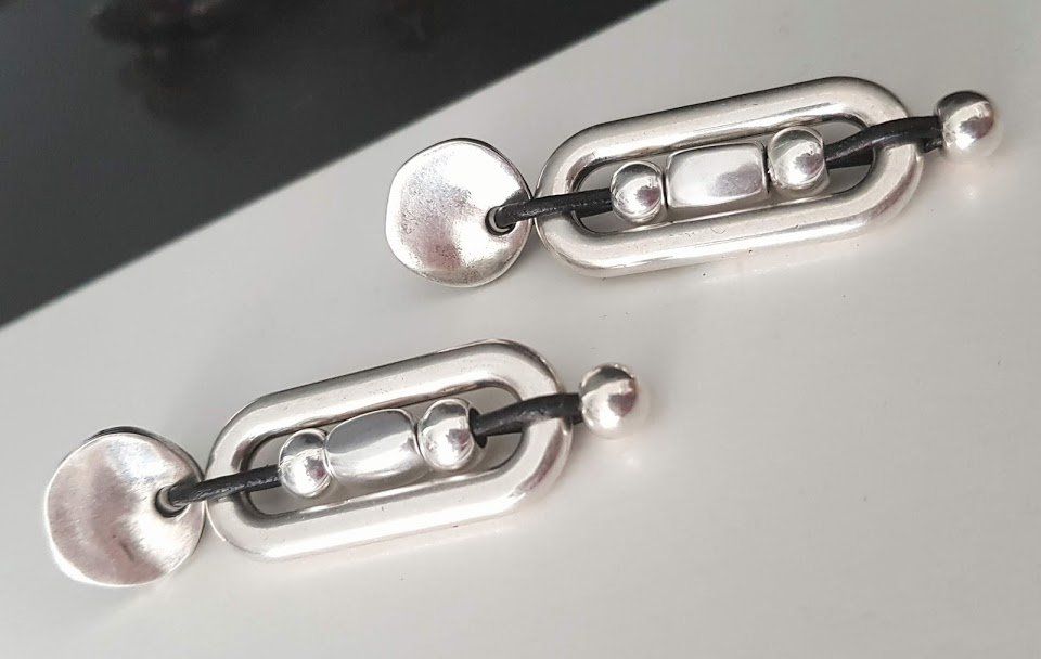 Pendientes largos aro y piedras, bañados en plata y cuero.