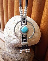 Длинное колье Кусок бирюзового цвета, залитый серебром, тесный ремешок.