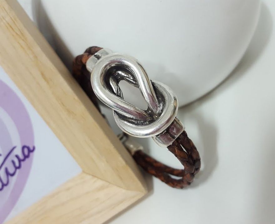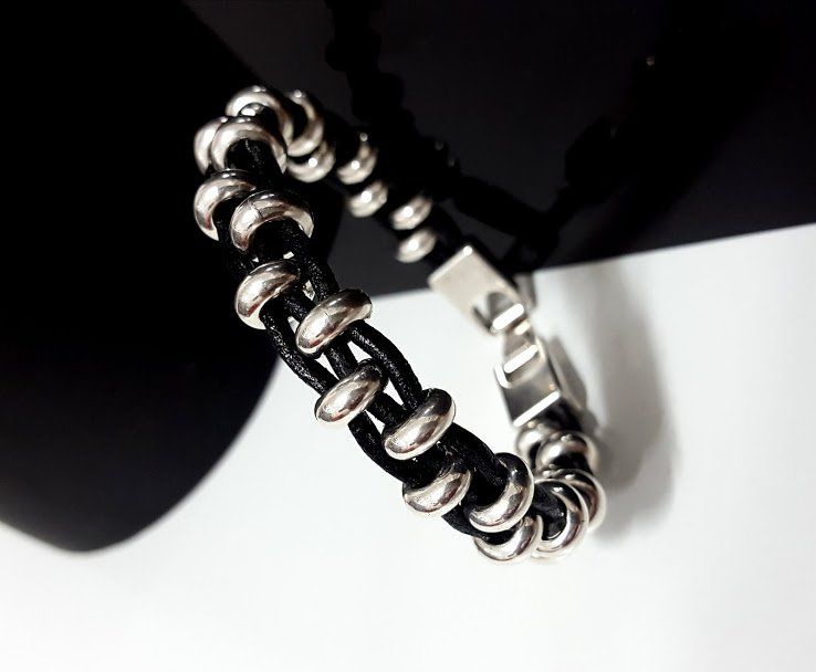 Браслет из бисера купается в серебре, лакричной коже и застежке.